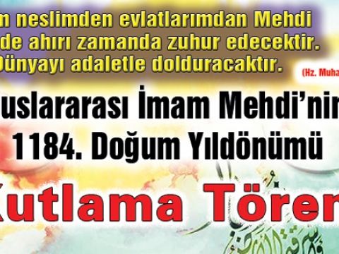 Iğdır-Tuzluca Al-i Aba Derneği ve Dünya Caferi Alimler Birliği tarafından düzenlenen, doğumunun 1184. yıl dönümünde İmam Mehdi'yi anma ve kutlama töreni 5 Mayıs Cumartesi günü Saat:13:30'da Yukarı Mahalle Celayır Kapalı Halı Sahasında yapılacak.